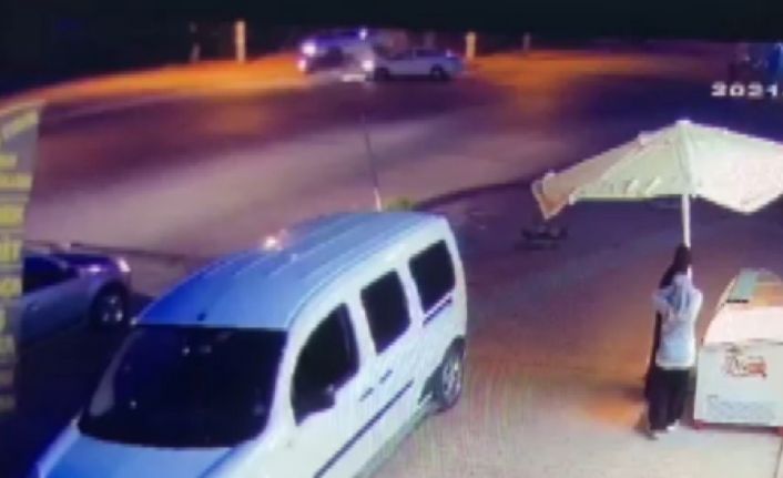 Kaza anı ise güvenlik kamerasınca kaydedildi. Görüntülerde, kavşakta iki aracın çarpışması, minibüsün takla atarak devrilmesi ve otomobilin ağaca çarparak durması yer alıyor.