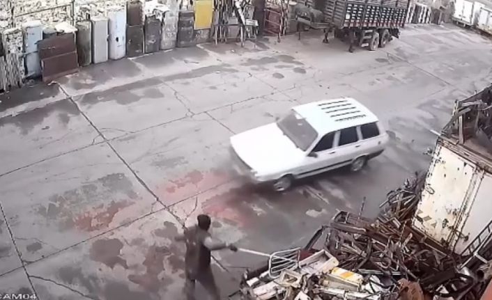 Şehitkamil, Sanayi Mahallesinde bir iş yerine giren hırsızlar maddi değeri 6 bin TL olan, tırlar da kullanılan 4 adet akaryakıt depo çerçevesi çaldı. Olayı fark eden bir görevli ise otomobille gelen hırsızları elindeki demir çubuk ile kovaladı. Otomobile binerek kaçan şahısları son anda elinden kaçıran görevli, elindeki demir çubukla son bir hamle ile araca vurabildi.