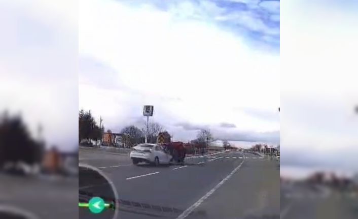 Nevşehir’in Hacıbektaş ilçesinde meydana gelen trafik kazasında 2 kişi yaralanırken, kaza anı araç kamerası tarafından saniye saniye kaydedildi.