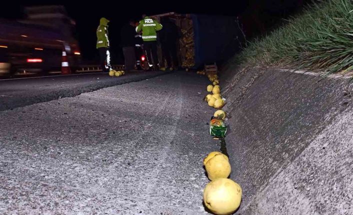 TEM Otoyolu Düzce kesiminde meydana gelen kazada ayva yüklü kamyonet devrildi. Şans eseri yaralananın olmadığı kazada ayvalar, yol kenarına saçıldı.
