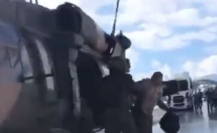 Askeri helikopter vatandaşlara havadan kumanya dağıttı