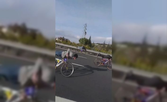Gaziantep’te, bir grup bisikletlinin otoyol üzerindeki tehlikeli yolculuğu vatandaşlar tarafından görüntülendi.