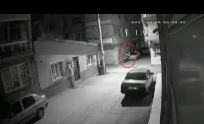 Sokak arasında meydana gelen hırsızlık olayı bir iş yerinin güvenlik kamerasına yansıdı. Görüntülerde, sokağın diğer tarafında nöbet tutan dört kişi görülürken, sokağın başında ise önce kilitli mi diye kontrol edip giden ve daha sonra geri dönüp motosikleti sürükleyerek götüren bir kişinin olduğu görüldü.