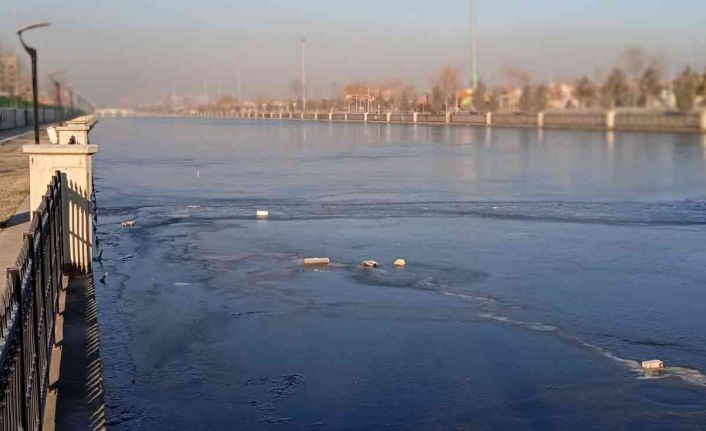 Hava sıcaklığının gece eksi 8 dereceye kadar düştüğü Afyonkarahisar’da kentin simgelerinden biri olan Akarçay yüzeyi buz tuttu.