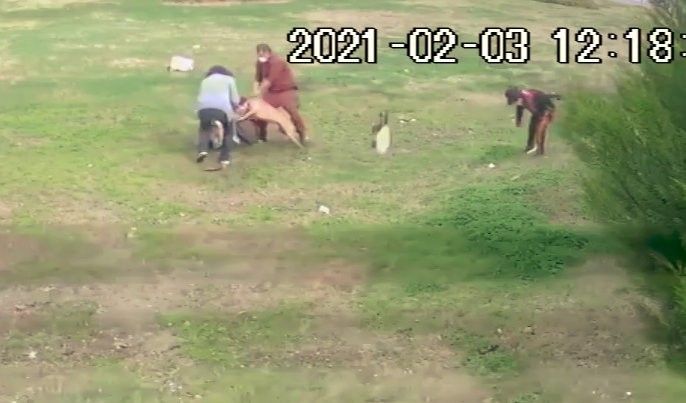 Olay sırasında köpekleri pitbullun saldırısına uğrayan Aleyna ve Saygın korkudan ne yapacaklarını şaşırırken, ellerine geçirdikleri malzemeleri atarak ayırmaya çalıştılar.