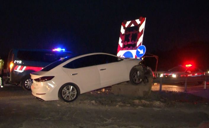 Arnavutköy-İstanbul Havalimanı yolunda kontrolden çıkan otomobil, ok gibi bariyerlere saplandı. Kazada otomobilde bulunan bir kişi yaralandı.
