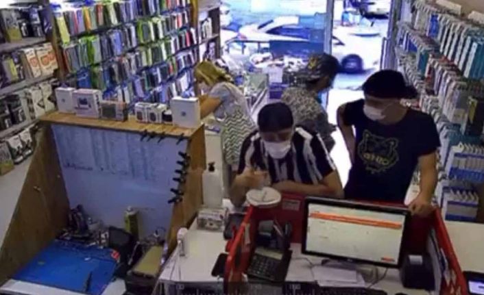İstanbul Ataşehir Esatpaşa Mahallesi’nde telefon tamiri ve satışı yapan bir iş yerine giren 4 kişi dükkandan toplam değerleri 15 bin TL olan 4 telefonu çaldı. 3 erkek ve 1 kadından oluşan grup, erkekler iş yeri sahibini oyalarken arka tarafta bulunan hamile kadın tezgahta bulunan telefonları alarak hızla olay yerinden uzaklaştı. Kadının kaçmasından saniyeler sonra telefonlarının çalındığını fark eden iş yeri sahibi neye uğradığını şaşırdı. Aynı kişilerin o gün içerisinde 5 dükkandan aynı yöntemle telefon çaldığı iddia edildi.
