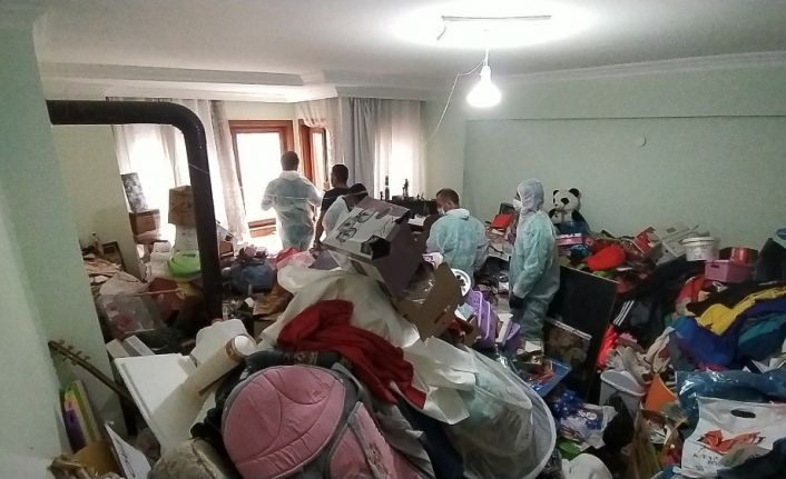 İlk seferde 4 kamyon eşya çıkarılan evin birinci katı temizlendikten sonra diğer katlarına ulaşabilmek için merdivendeki eşyalar temizlik işçileri tarafından toplanarak kamyona yüklendi. Sonra girilen diğer dairelerde bulunan eşyalar zabıta ekipleri ve temizlik işçilerinin titiz çalışması sonucu tek tek incelenerek değerli eşyalar ayrıldı, atılacaklar kamyona yüklendi.