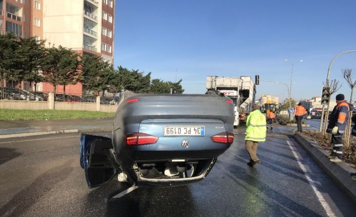 Büyükçekmece’de kısıtlamanın ikinci gününde boş yolda bir araç takla attı. Kazada sürücü hafif şekilde yaralandı.