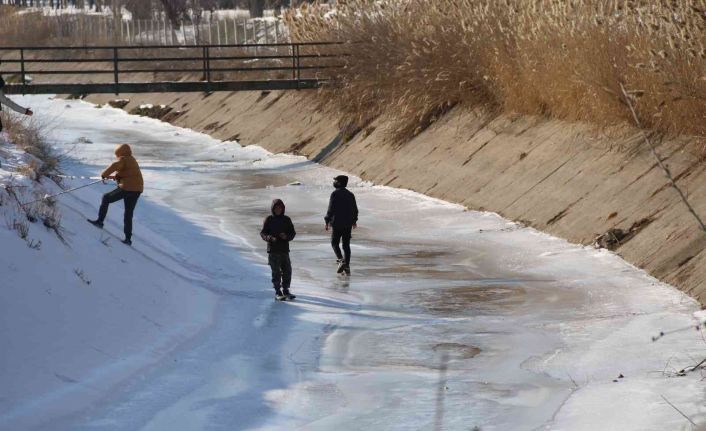 Eskişehir’in Çamlıca Mahallesi’nde bulunan sulama kanalı, soğuk havanın etkisiyle dondu. Buzla kaplanan kanalı gören çocuklar, donan suyun üzerinde yürüdü. Çocukların buzda yürüdüğü anlar kameralara yansıdı. Kanalın içerisinde çocukları gören vatandaşlar şaşkınlıklarını gizleyemedi. Porsuk Çayı başta olmak üzere donan su yüzeylerine çıkılmaması yönünde yetkililer tarafından birçok uyarı yapılmasına rağmen, çocukların kanalı kullanarak karşıdan karşıya geçmesi hayrete düşürdü. Buzun sağlam olması nedeniyle çocukların tehlikeli oyunu, herhangi bir sorun yaşanmadan sona erdi.