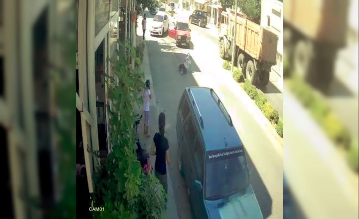 Serik İlçesine bağlı Akçaalan Mahallesinde meydana gelen kazada iki otomobil kavşakta çarpıştı. Otomobil ile seyir halindeyken kavşakta kontrolsüz ’U’ dönüşü yapan otomobile çarpan sürücü araçtan inmeye hazırlanırken diğer otomobil sürücüsü hiçbir şey olmamış gibi yoluna devam etti. Kazaya karışan otomobilde yolcu olarak bulunan bir kadın, inip sürücünün arkasından koştu ancak dengesini kaybederek düştü. Çaresizce kalkıp indiği otomobile doğru yürüyen kadının yaşadıkları ve kaza anı güvenlik kamerası tarafından da saniye saniye kaydedildi.