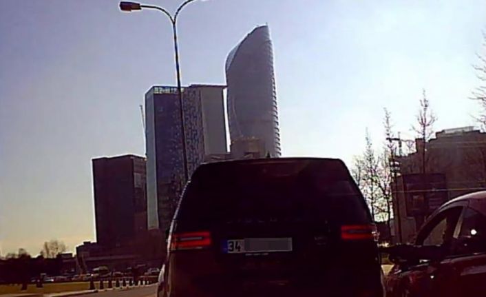 Sarıyer Maslak’ta yoğun trafikte ilerleyen otomobil sürücüsü, bir hamle yaparak önüne geçen cip sürücüsüne sinirlendi. Cipe vurmaya başlayan diğer sürücü aracın durmaması üzerine bir de yumruk attı. Yaşanan kavga araç kamerasına yansıdı.