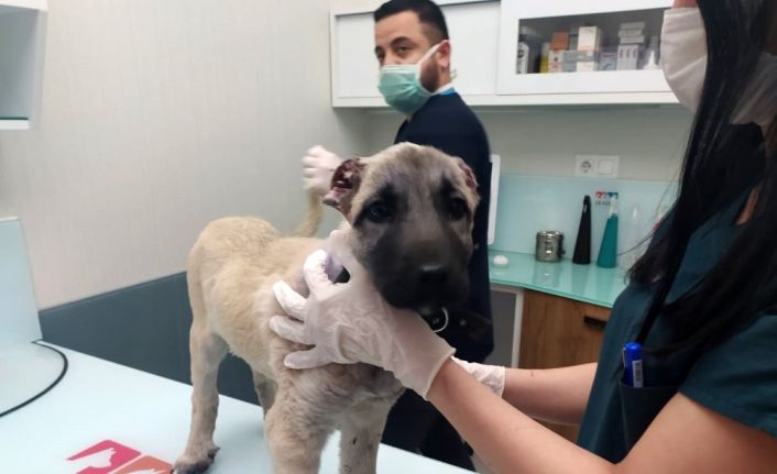 (ÖZEL) Kulakları kesilip sokağa bırakılan yavru köpeğe hayvanseverler sahip çıktı