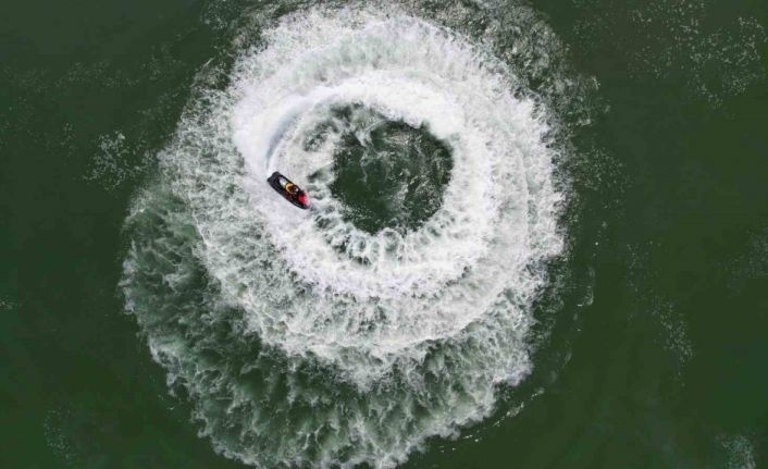 Türkiye’nin mavi bayraklı en uzun plajı olma unvanına sahip Karacabey Boğazı plajında cankurtaranlar tarafından yapılan jet skili kurtarma tatbikatı nefesleri kesti. Kumsalda yatıp güneşlenirken şezlonglarından kalkan tatilciler, kurtarma tatbikatını ilgiyle izledi.