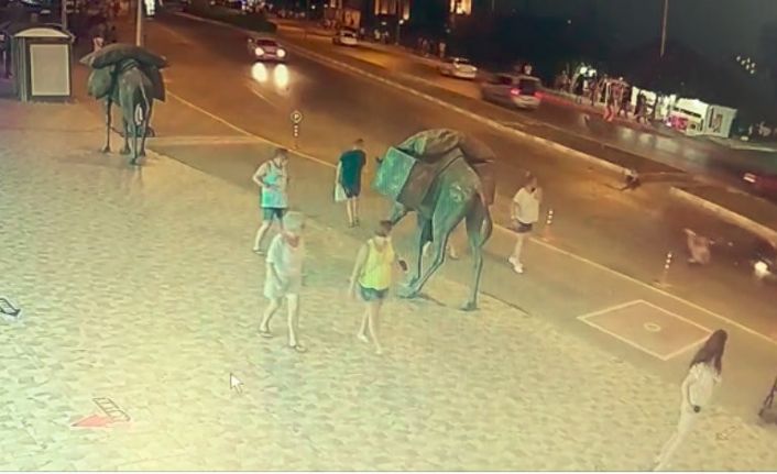 Kaza anı saniye saniyesine çevredeki iş yerlerinin güvenlik kamerasına yansıdı. Görüntülerde kaldırımda bir süre yürüdükten sonra yaya geçidinden yolun karşısına geçmek isteyen Alman turistlerin yolun tamamen boşalmasını bekledikleri, tam yolun sonuna geldiklerinde aşırı hızlı bir şekilde gelen motosikletin Alman turistlere çarparak asfalta savurduğu görüldü.