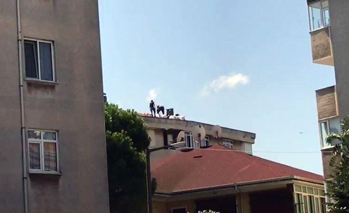 Pendik’te 5 katlı binanın çatısına hiçbir güvenlik önlemi olmadan çıkarak çatı tamiri yapan iki kişi yürekleri ağza getirdi. Olası bir faciaya davetiye çıkarılan anlar cep telefonu kamerasına yansıdı.