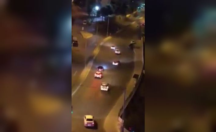 Konvoy yapan araçların drift terörü cep telefonu kamerasına yansıdı. Görüntülerde konvoy şeklinde ilerleyen otomobiller yolda zikzaklar çizerek ilerliyor.
