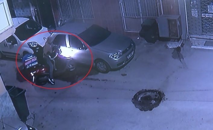 Bursa’da pizzacının motosikletini çalan acemi hırsızın macerası kısa sürdü. Başka bir kuryenin attığı tekmeyle yere kapaklanan hırsız, çaldığı motosikleti bırakıp kaçtı. Motosikletin çalınma anı ise güvenlik kamerasına an be an yansıdı.