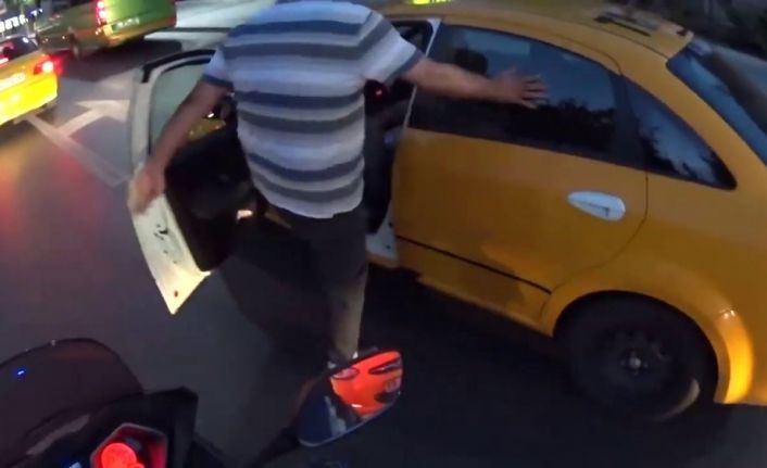 Taksici adamın koşarak üstüne geldiğini görünce camı kapatarak kapıları kilitlemek istedi. Ancak minibüs şoförü kapıyı açarak taksiciye saldırmaya başladı. Birkaç tekme ve tokat atarak taksiciyi darp eden şahıs, sürücünün “küfür etmedim” demesine rağmen bir türlü sakinleşmedi. Öfkeden deliye dönen ve küfürler savuran minibüs şoförünü çevredeki vatandaşlar sarılarak uzaklaştırdı. Olayın ardından minibüs şoförü aracına binerek uzaklaştı. Korku dolu anlar ise bir motosikletlinin kask kamerasına saniye saniye yansıdı.