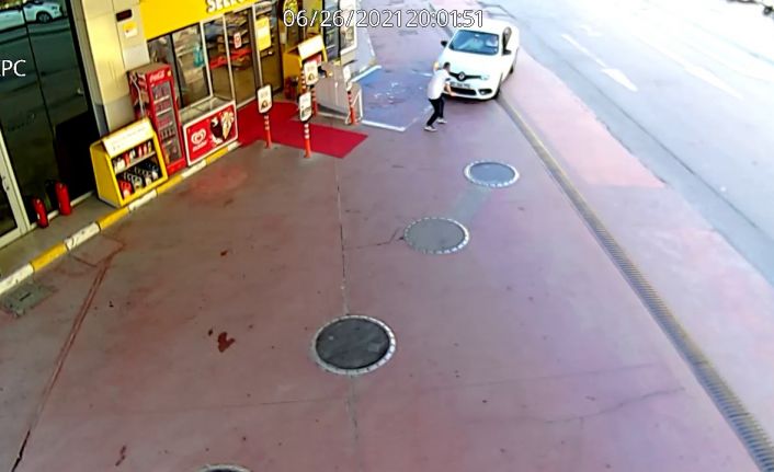 Olay geçtiğimiz Cumartesi akşamı Zeytinburnu Prof. Dr. Turan Güneş Caddesi’nde bir benzin istasyonunda yaşandı. Benzin istasyonuna hızla giren 34 DHB 770 plakalı otomobil, gazeteci Nasır Tasmanoğlu’na (29) çarptı. Sürücü olaydan sonra hiç bir şey olmamış gibi kaçtı. Çarpmanın etkisiyle hafif yaralanan gazeteciye benzin istasyonunda çalışanlar yardım etti. O anlar kameraya yansıdı.