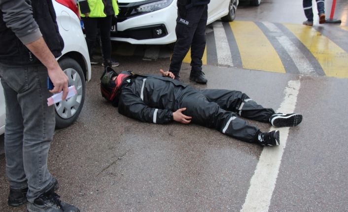 Kocaeli’nin Kartepe ilçesinde sipariş yetiştirmek isteyen kurye, motosikletin devrilmesi sonucu yere düştü. Yaralanan sürücü, olay yerindeki müdahalelerin ardından hastaneye kaldırıldı.