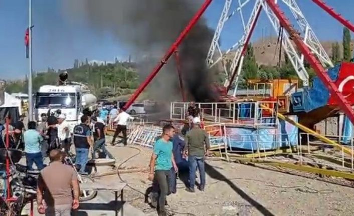 Panayır etkinlikleri çerçevesinde festival alanına kurulan gondol, açılış sırasında bir anda alev aldı.