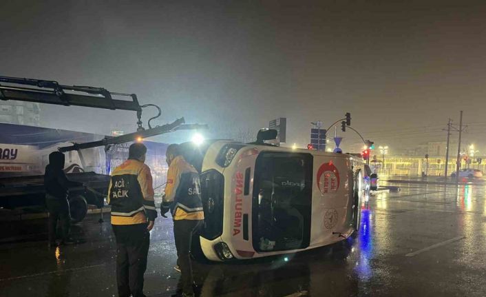 Panelvan ile çarpışan ambulans devrildi: 6 yaralı