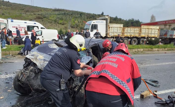 Sakarya’nın Geyve ilçesinde benzin istasyonuna girmek isteyen bir otomobilin yavaşlaması sonrasında arkasından gelen otomobil ile karşı şeritten gelen otomobil kafa kafaya çarpıştı. Meydana gelen kazada 2’si çocuk toplamda 6 kişi yaralanırken kaza anı güvenlik kamerasına yansıdı.