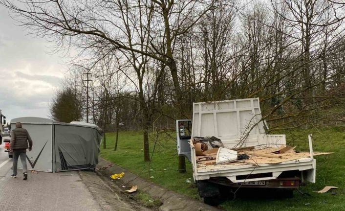 Kocaeli’nin Kartepe ilçesinde seyir halindeki panelvan sürücüsü direksiyon hakimiyetini kaybederek kamyonete çarptı. Duramayan kamyonet toprak yola girerek bir ağacı devirdi. Yaralanan 2 sürücü hastaneye kaldırıldı.