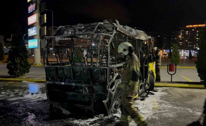 Bursa’da park halindeki belediye midibüsü alev aldı. Rüzgarın şiddetiyle alev topuna dönen midibüsten geriye demir yığını kalırken, o anlar saniye saniye kaydedildi.