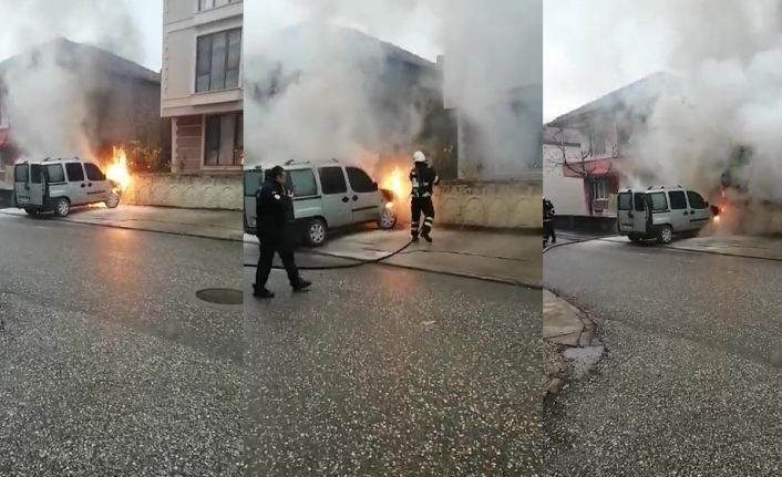 İhbar üzerine kısa sürede olay yerine gelen ekipler hafif ticari araçta çıkan yangını kısa süre içerisinde kontrol altına aldı.