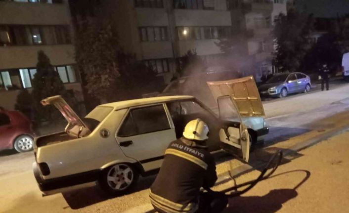 Bolu’da gece saatlerinde park halindeyken alev alev yanan otomobil kullanılamaz hale geldi.