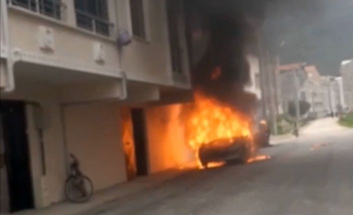Bursa’da park halindeki otomobil alev alev yandı. İtfaiye ekiplerinin müdahalesiyle söndürülen otomobil kullanılamaz hale geldi.