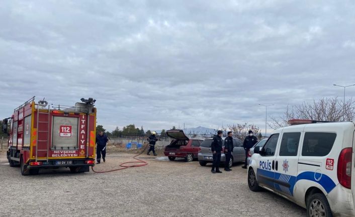 Nevşehir’de park halindeyken alev topuna dönen otomobil, kullanılamaz hale geldi.