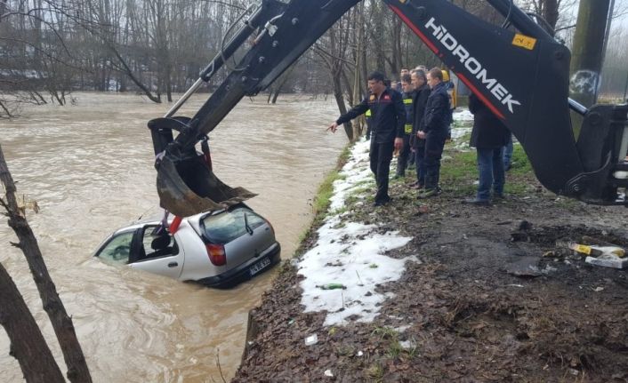 Edinilen bilgilere göre, Orduyeri Mahallesi’nde oturan Asım Karataş, dün akşam 74 BE 932 plakalı aracını, bölgede bulunan Çağlayan Piknik alanına park etti. Sabah aracını almak için bölgeye giden Karataş, sağanak yağmur sonrası yükselen ırmakta aracını gömülü halde buldu. Karataş durumu itfaiyeye bildirerek yardım istedi. Bartın Belediyesi itfaiye ekipleri sulara gömülen otomobili vinçle bağlayarak, bir saatlik çalışma sonrası bulunduğu yerden çıkarttı.