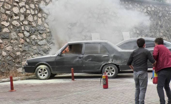Maddi hasarın meydana geldiği otomobildeki yangının elektrik kontağından çıktığı belirtildi.