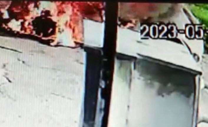 Park halindeki otomobilin alev alev yandığı anlar kamerada