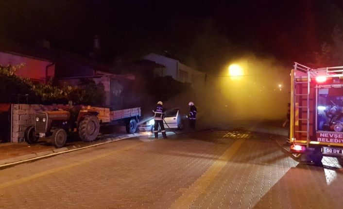 Alınan bilgiye göre, gece saatlerinde Turgut Özal Caddesi’nde sürücüsünün kimliği henüz belirlenemeyen 50 AAS 938 plakalı otomobil, yolun sağ tarafında park halinde olan traktöre arkadan çarptı. Çarpmanın etkisiyle otomobilin motoru bir anda alev alırken, alkollü olduğu iddia edilen sürücüyü vatandaşlar güçlükle dışarı çıkarttı. İhbar üzerine olay yerine gelen itfaiye ekipleri otomobilde çıkan yangını söndürürken, jandarma ekipleri olayla ilgili inceleme başlattı.