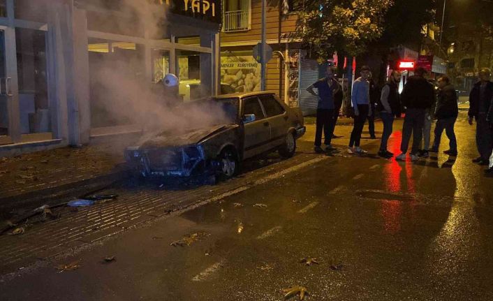 Bursa’nın İnegöl ilçesinde gece saatlerinde park hâlindeki otomobil alev alev yandı.