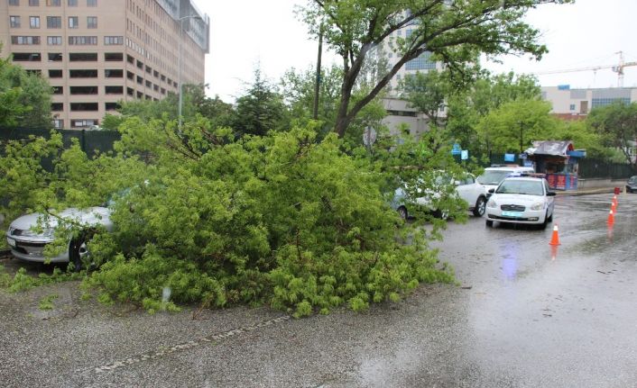 Ankara’da şiddetli yağmur ve rüzgar etkili oldu. Fırtınada, park etmenin yasak olduğu alana park edilmiş bir aracın üzerine ağaç dalı düştü. Araçta maddi hasar meydana geldi.