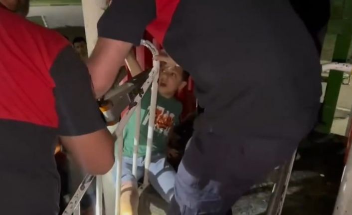 Parkta ayağı oyun grubu demirlerine sıkışan çocuk, itfaiye ekiplerince kurtarıldı