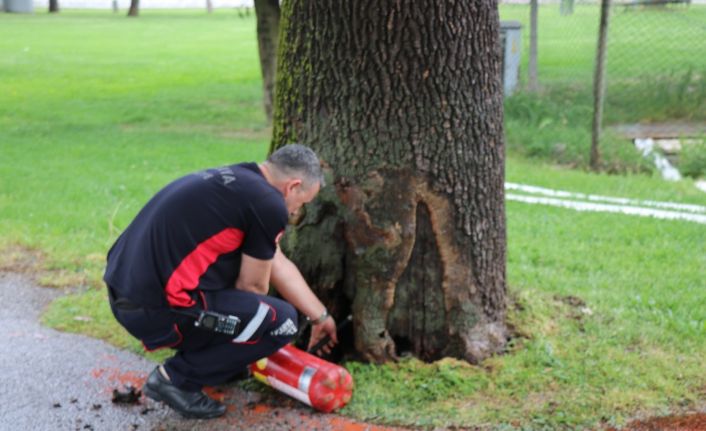 Sakarya’nın Adapazarı ilçesinde bulunan Aziz Duran Parkı içerisinde yer alan bir ağacın alt kısmında çıkan yangın faciaya dönüşmeden itfaiye ekiplerince söndürüldü.