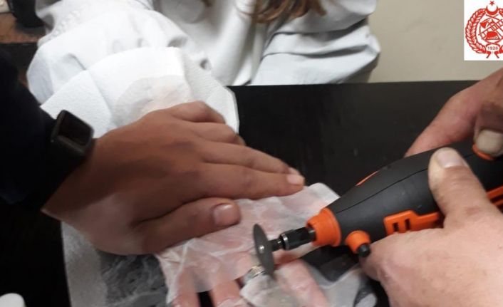 Edinilen bilgiye göre, parmağında sıkışıp kalan yüzüğü çıkaramayan vatandaş durumu itfaiyeye bildirdi.