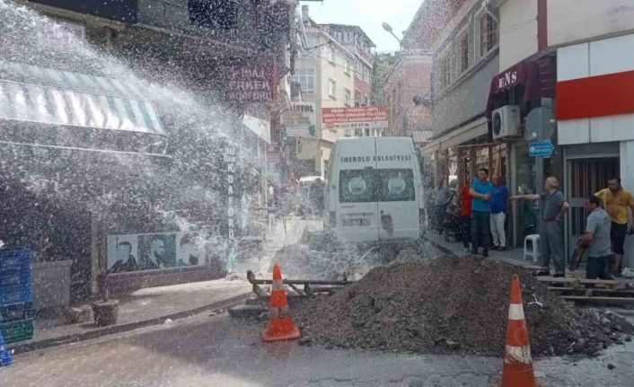 Kastamonu’nun İnebolu ilçesinde en işlek caddelerinden Cumhuriyet Caddesinde İnebolu Belediyesi ekiplerince çalışma yapıldığı sırada su şebeke hattı patladı. Patlayan su borusundan tazyikli su, metrelerce yükseğe ulaşarak işyerlerin ve vatandaşların üzerine sıçradı. Patlayan su borusu sebebiyle bazı işyerleri ve vatandaşlar su altında kalarak ıslandı. İnebolu Belediyesi ekipleri, bölgeye verilen su şebeke hattını keserek zarar gören boruyu onarmak için çalışmasını sürdürüyor.