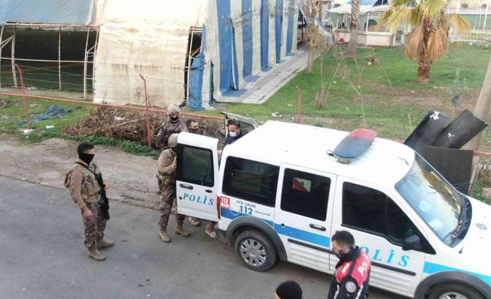 Mersin’de 550 polis, narkotik köpekleri ile helikopter ve drone desteği ile uyuşturucu satıcılarına yönelik gerçekleştirilen ’Pençe-1’ isimli şafak operasyonunda 38 kişi gözaltına alındı. Şahısların adreslerinde yapılan aramalarda çok miktarda uyuşturucu ve silah ele geçirildi.