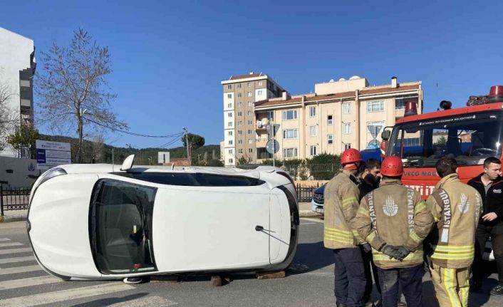 Pendik’te seyir halinde olan otomobil, ara sokaktan çıkan başka bir otomobil ile çarpıştı. Çarpışmanın etkisiyle otomobillerden biri yan yattı. Kazada 1 kişi yaralandı.