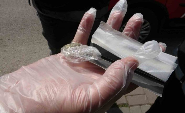 Yapılan denetimlerde durdurulan taksi içerisindeki bir şüpheli şahsın üzerinde yapılan aramada uyuşturucu ve uyarıcı madde olan esrar bulundu. Yapılan üst aramasında ayakkabısının içerisine sakladığı uyuşturucu maddeyle birlikte şüpheli şahıs, polis ekipleri tarafından ifadesi alınmak üzere polis merkezine götürüldü.