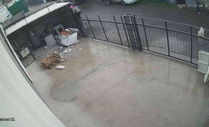 Pendik’te gündüz saati, bir fabrikanın yaklaşık 2 metre boyunda olan ve üstünde dikenli teller bulunan demir kapısına tırmanan kadın hırsız fabrika bahçesine girdi. Bahçede bulunan lavaboları kıran kadın muslukları çaldı. Kadının dikenli tellerin olduğu kapıdan atlayıp hırsızlık yapması görenleri şoke etti. O anlar güvenlik kamerasına yansıdı.