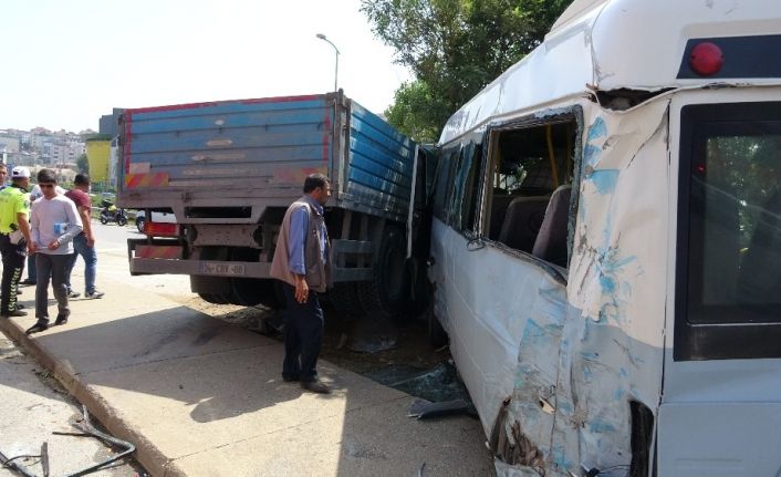 Pendik’te seyir halinde olan kamyon ile hatlı minibüs çarpıştı. İki araç da kontrolden çıkarak yoldan savrulurken, kamyon park halinde olan servis aracına çarparak durabildi. Kazada minibüste bulunan 3 kişi yaralandı.