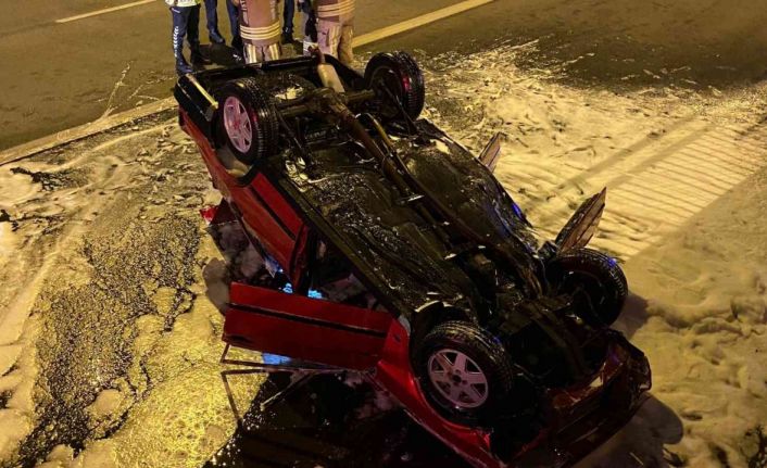 Pendik E5 Kara Yolu’nda sürücüsünün direksiyon hakimiyetini kaybettiği araç takla atarak yandı. Kazada 4 kişi yaralandı.